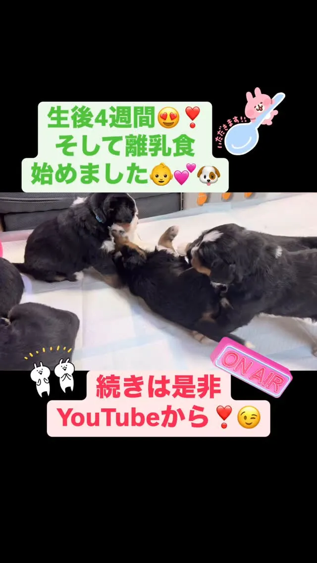 昨日で生後4週間になりましたぁ😍💕🐶 昨日で生後4週間になりましたぁ😍💕🐶👏👏👏👏👏👏👏👏👏👏👏👏👏👏離乳食も始めました🥳🎵良かったらYouTubeでロングバージョンも投稿したので気になる方は是非YouTubeの方も見て頂けたら嬉しいです😄めっちゃ癒されます😆❣️💕…