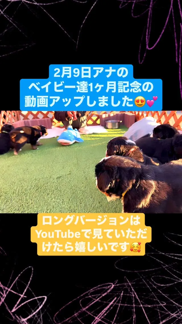 2月9日❣️ 2月9日❣️アナのベイビー達が生後1ヶ月になりましたぁ😍✨可愛い天使達はますます可愛くなってきてます☺️💕初めてお外で可愛く遊んでいる様子をYouTubeでみて頂けたら嬉しいです🥹🙏💕🐶めっちゃ癒されました🥰❣️…